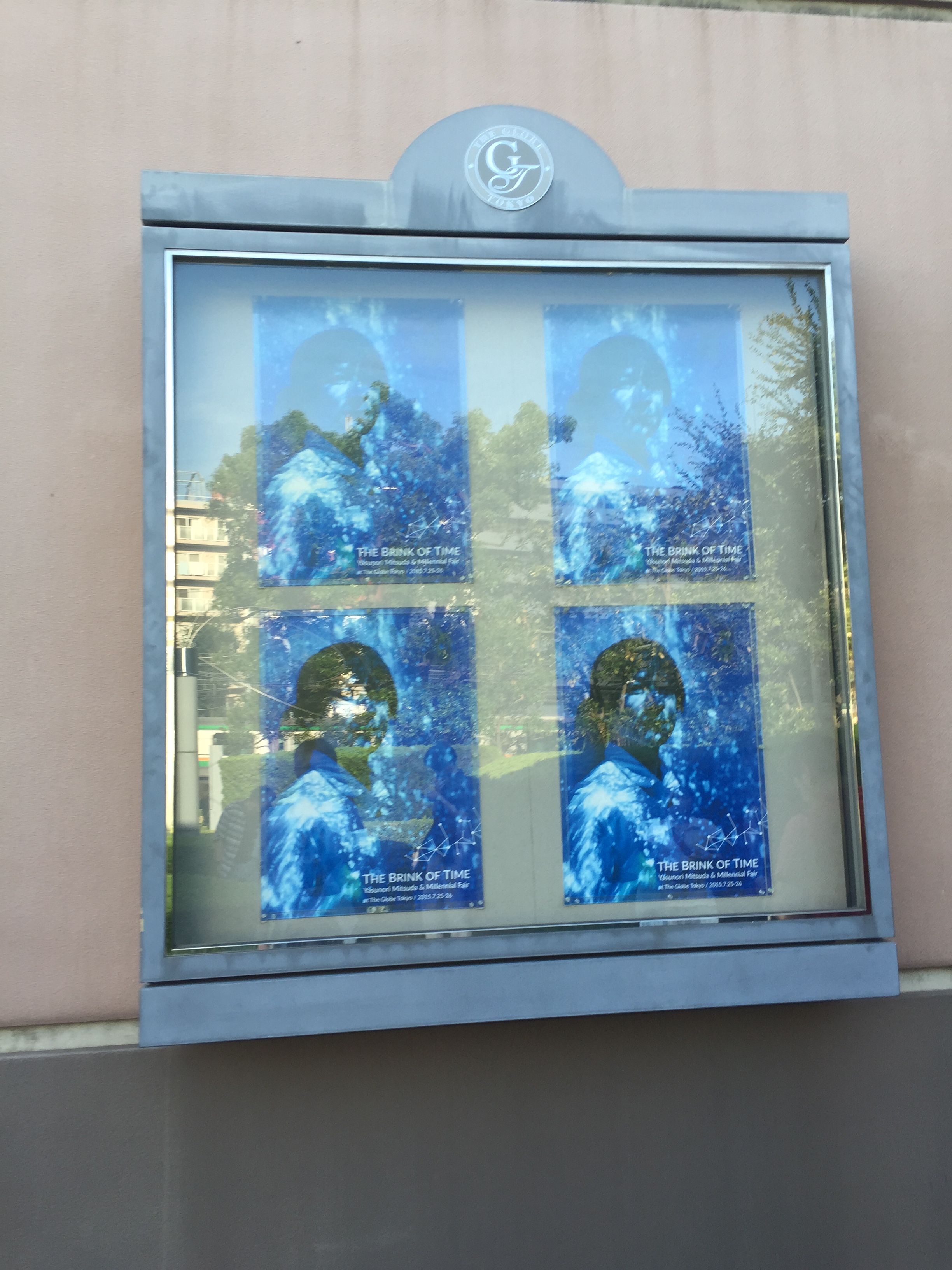 こんな感じでグローブ座にチラシが!光の反射でまったくうまく撮れませんでした