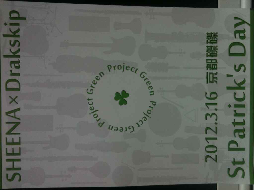 3月16日(金)のセントパトリックスデー前日、京都の磔磔(←タクタクと読むらしい)です。
